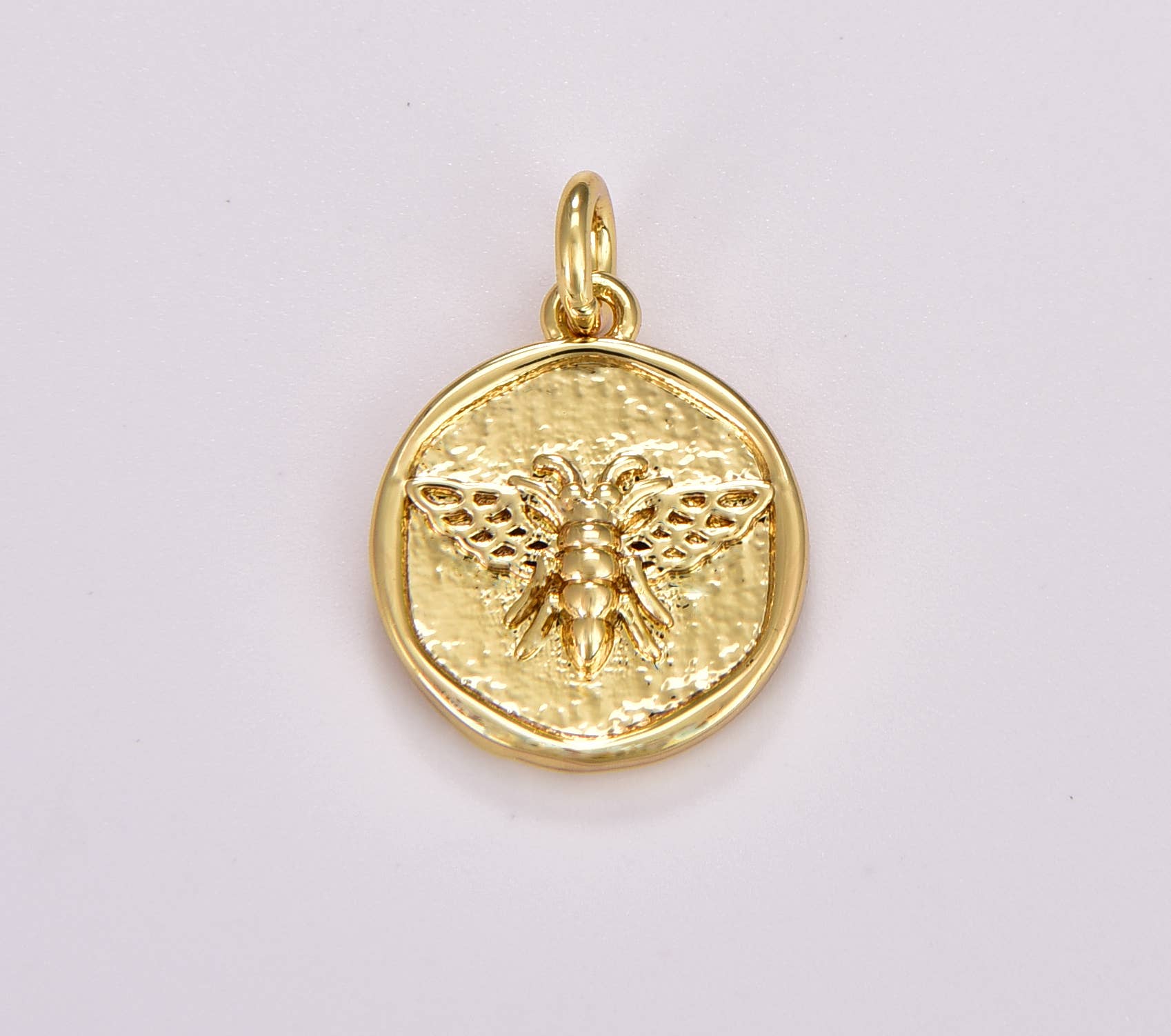 Gold Filled Queen Bee Medallion Charm Pendant, CP1709