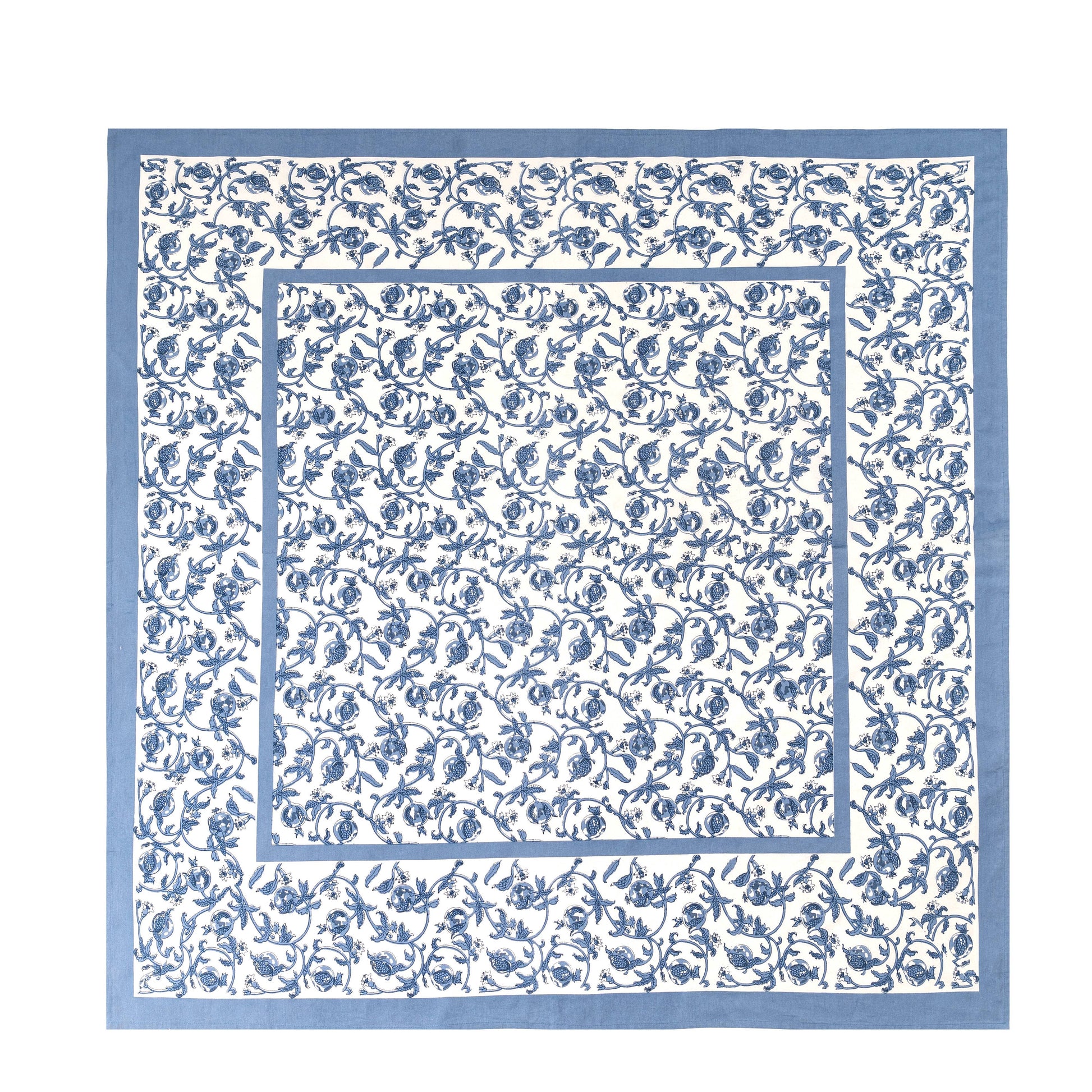 Featuring a delicately intertwined floral pattern with iconic cornflower blue pomegranates atop a white background, the Granada Cornflower Blue collection makes a tranquil, richly colored complement to any table. Suitable for formal, festive, and casual events alike, these high-quality linen tablecloths (available in round and rectangular shapes) come in a classic motif with French country styling, and have been hand-printed by skilled artisans using a time-honored technique.