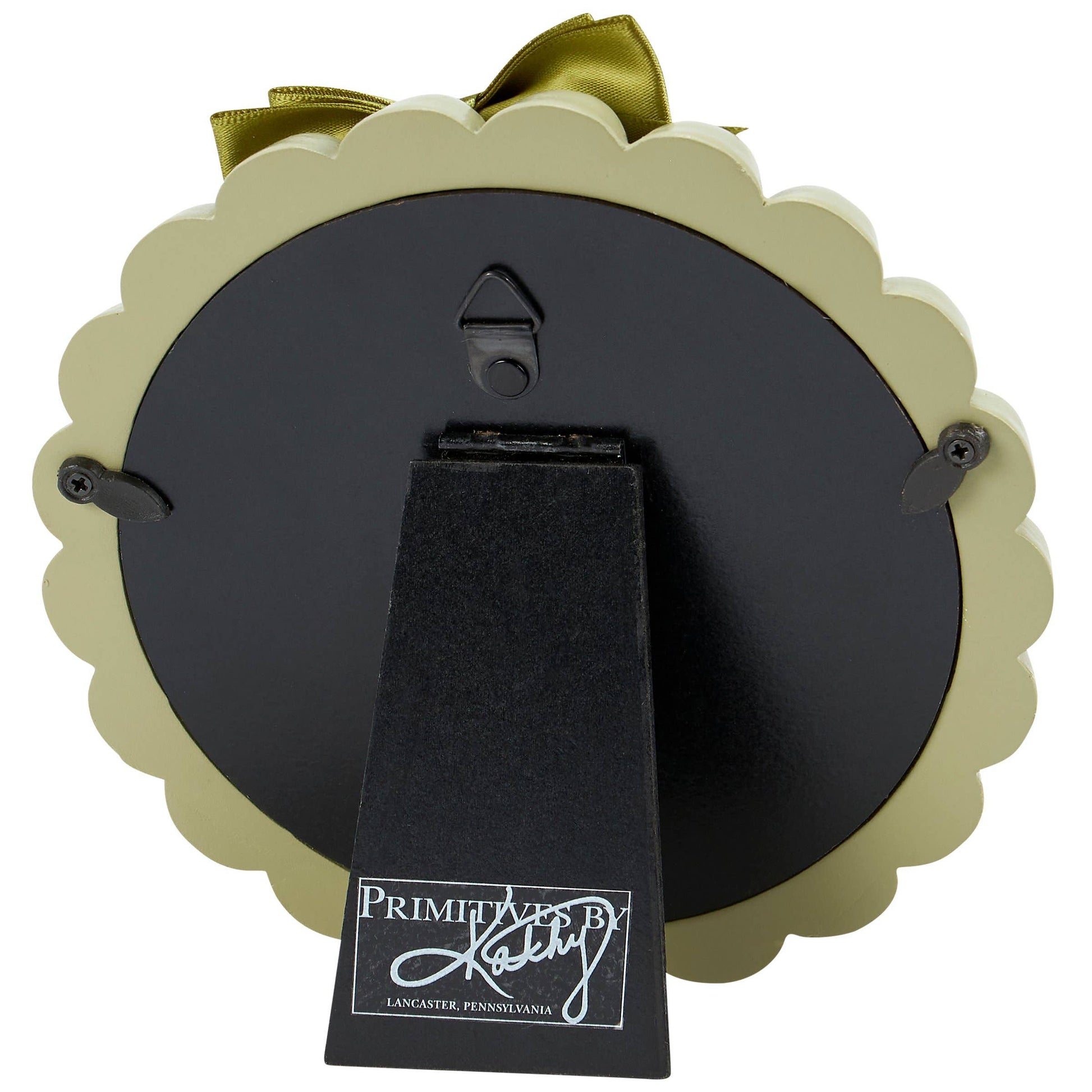 A decorative photo frame from our Baby & Kids Collection displaying round green wooden bead design with inset bow design and green ribbon accent at the top of the frame for added dimension. Frame fits a 4 inch by 4 inch photo and can easily be replaced via clips on back. Our Green Beaded Round photo frame is easy to display using easel back to free-stand. A charming photo frame perfect for displaying favorite memories as everyday children's room décor.