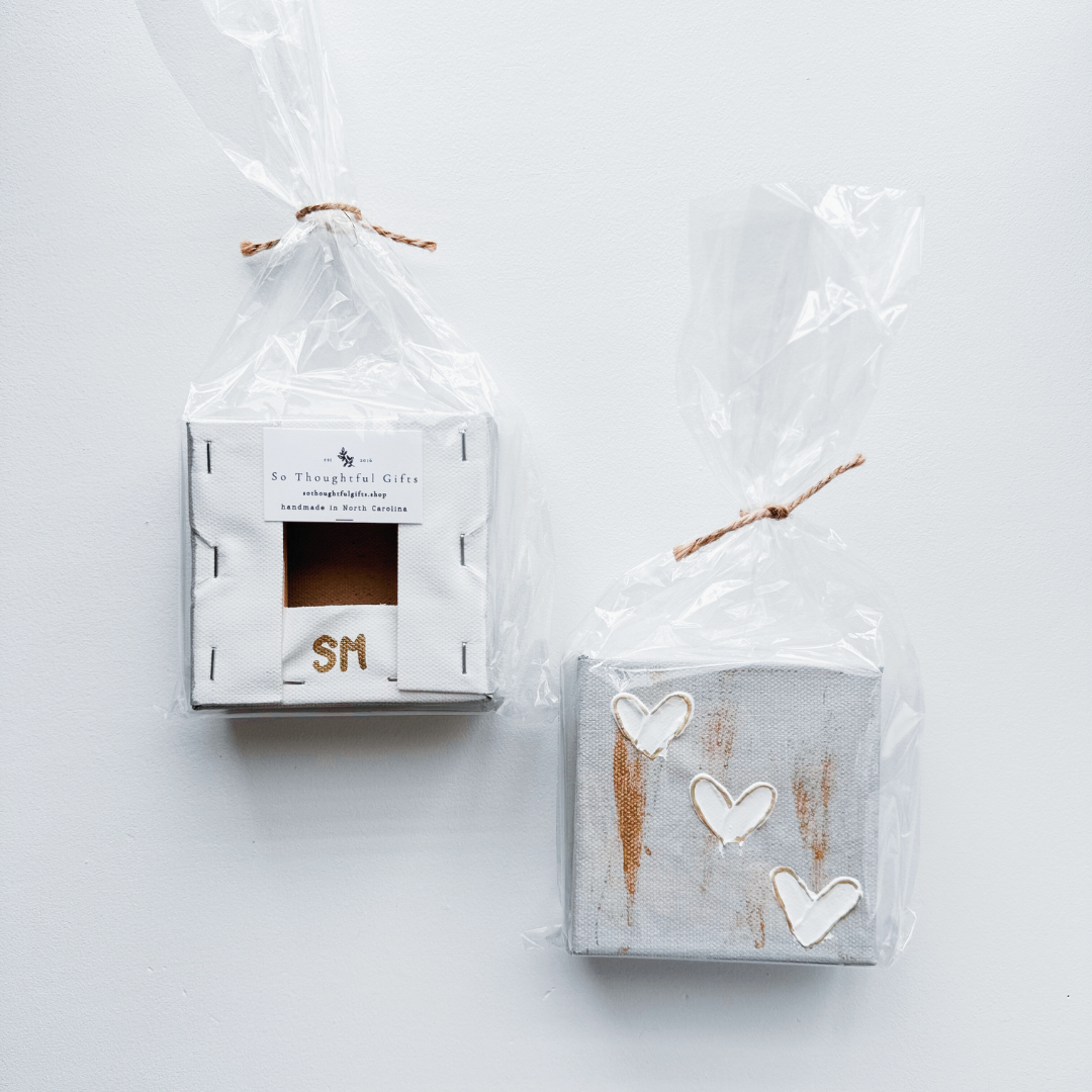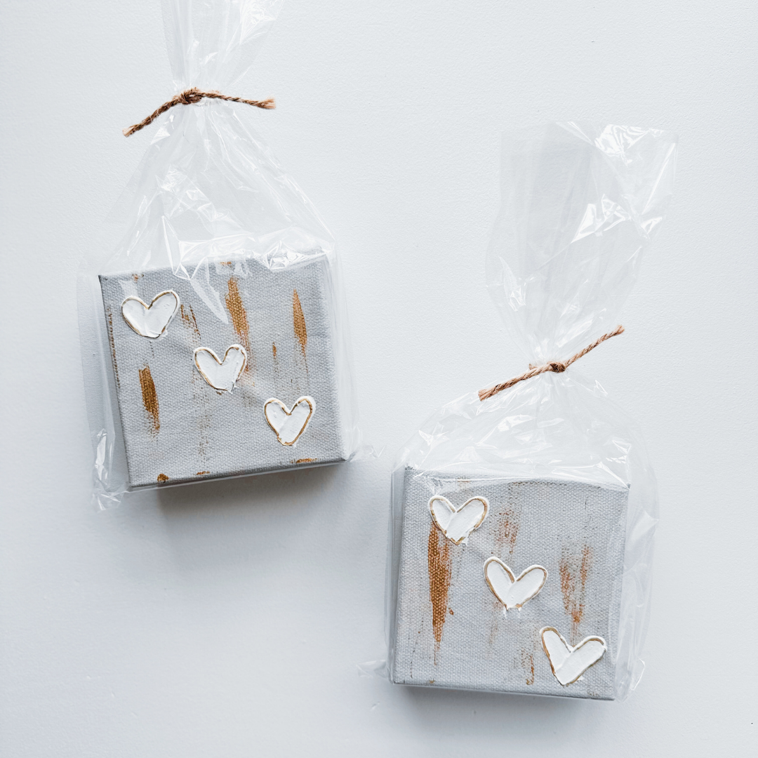 Hand-painted Textured 3 Mini Hearts - Gray | Canvas Art