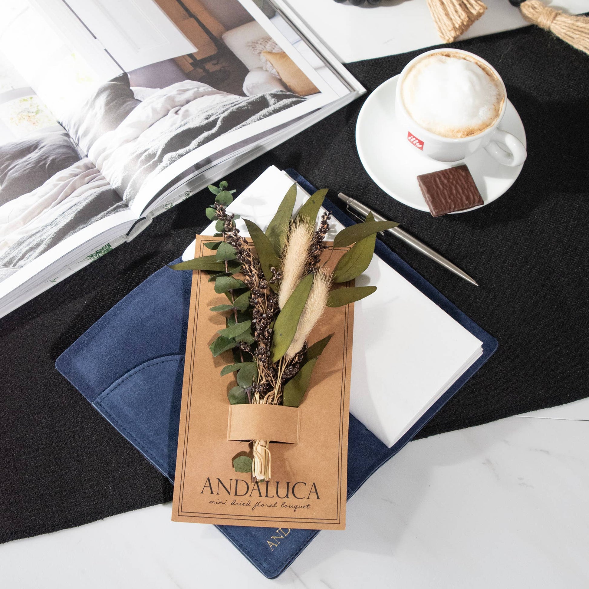 Our floral team designed this beautiful MINI bouquet using an assortment of baby eucalyptus, willow, and grains to create this charming and petit mini bouquet arrangement. Each bouquet is designed and handcrafted in our California design studio and is a perfect decorative accent to your tablescape or vignette.