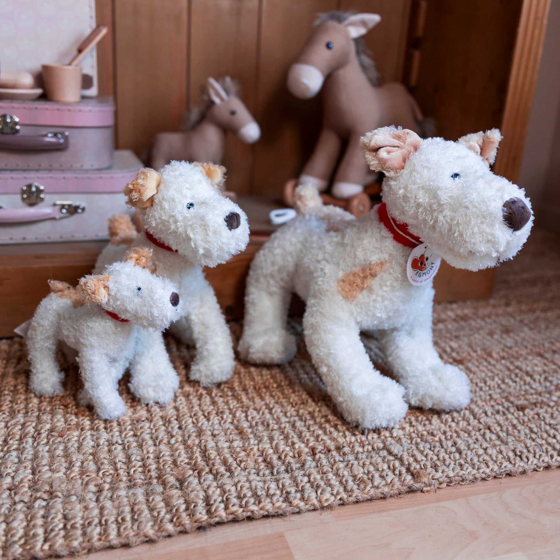 Meet Eliot the Dog, the official mascot for Egmont Toys. Adorable plush dog will capture the hearts of kids and moms alike. Eliot has a small red collar and stands on his own! Soft white fur with tan patches. Black eyes and brown nose create a gentle face. Cuddly and sweet to hold.