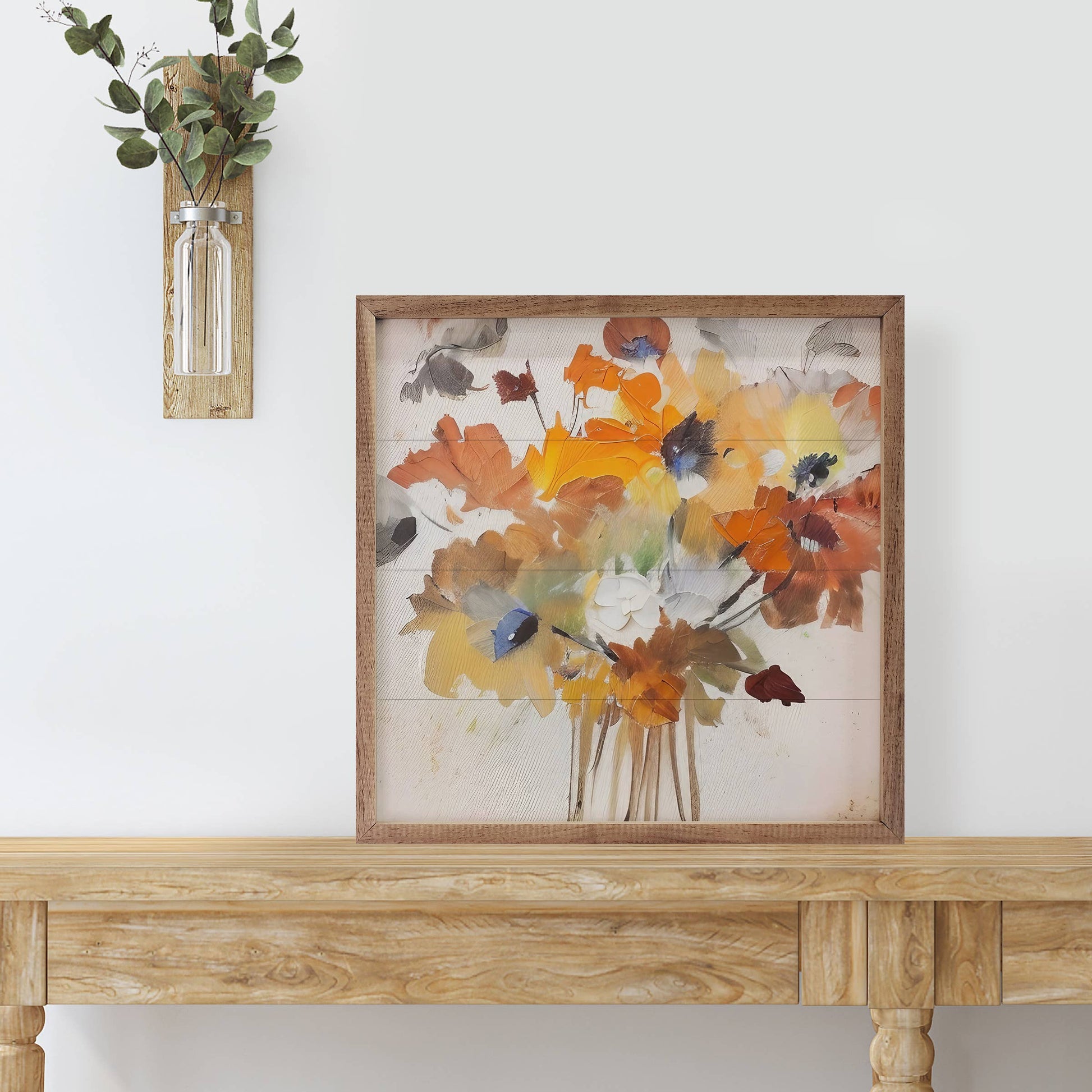 This unique piece is a simple way to bring beauty and charm to any wall or shelf within the home. It is made from high quality American hardwood planks with a hand painted face, and printed with UV cured ink, and is framed in a natural walnut frame. Each piece is unique with its own personality, marks, wood grain, and look. Easy to clean with a dry cloth.